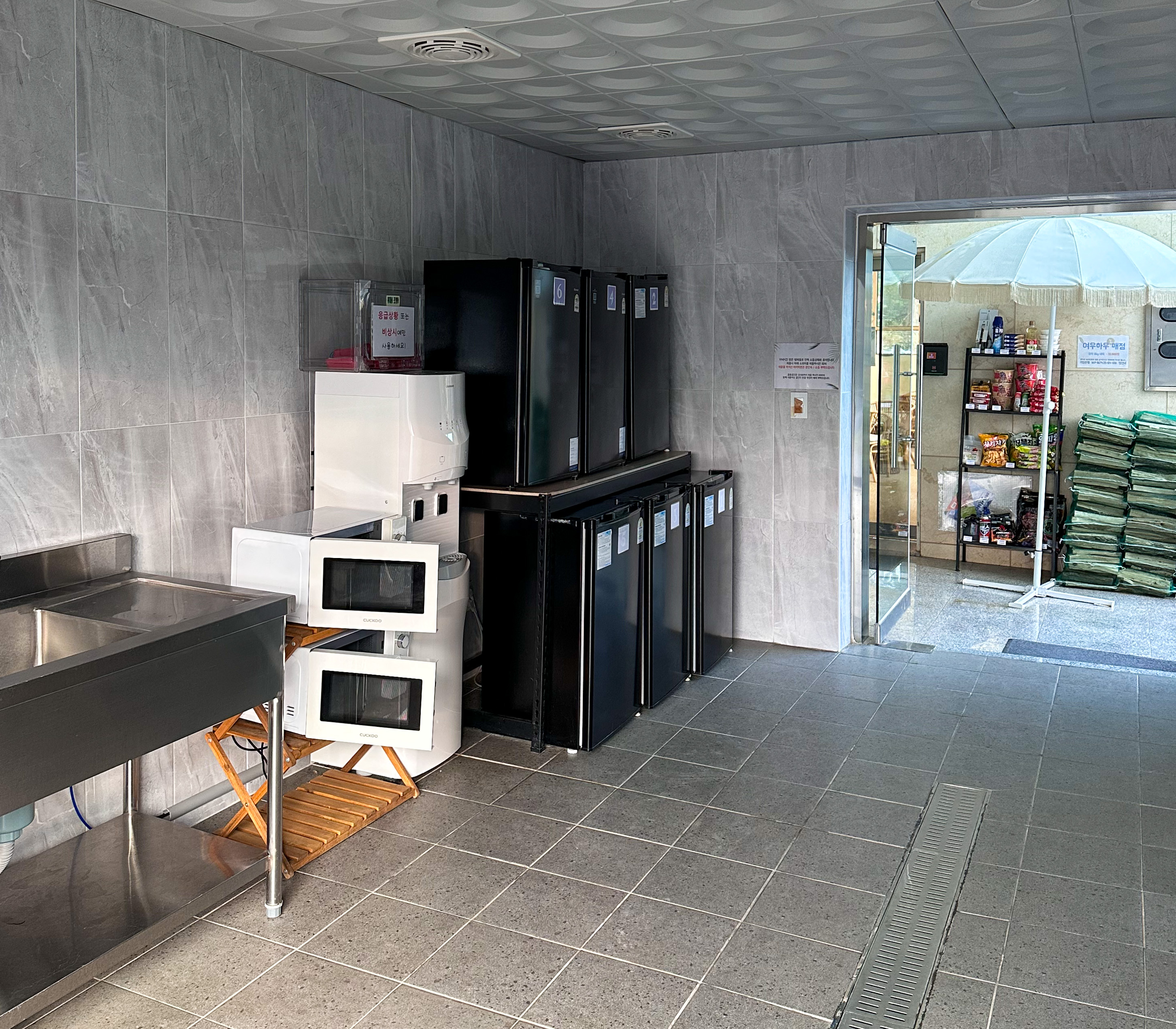 간단한 필요 용품이나 음료, 라면 등등 구매가 가능했고