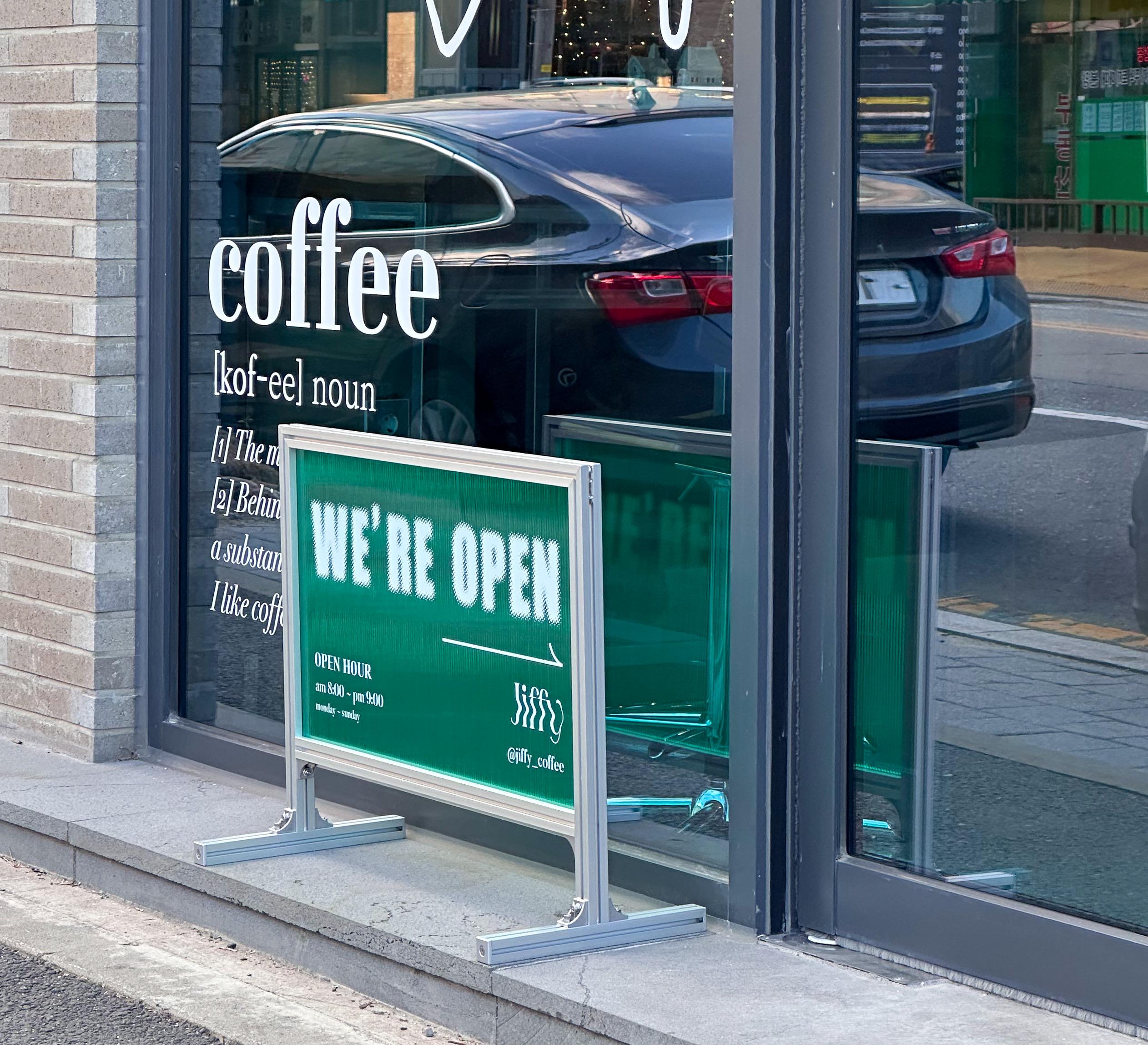 지피커피는 신축건물 1층에 입점해 있어요.