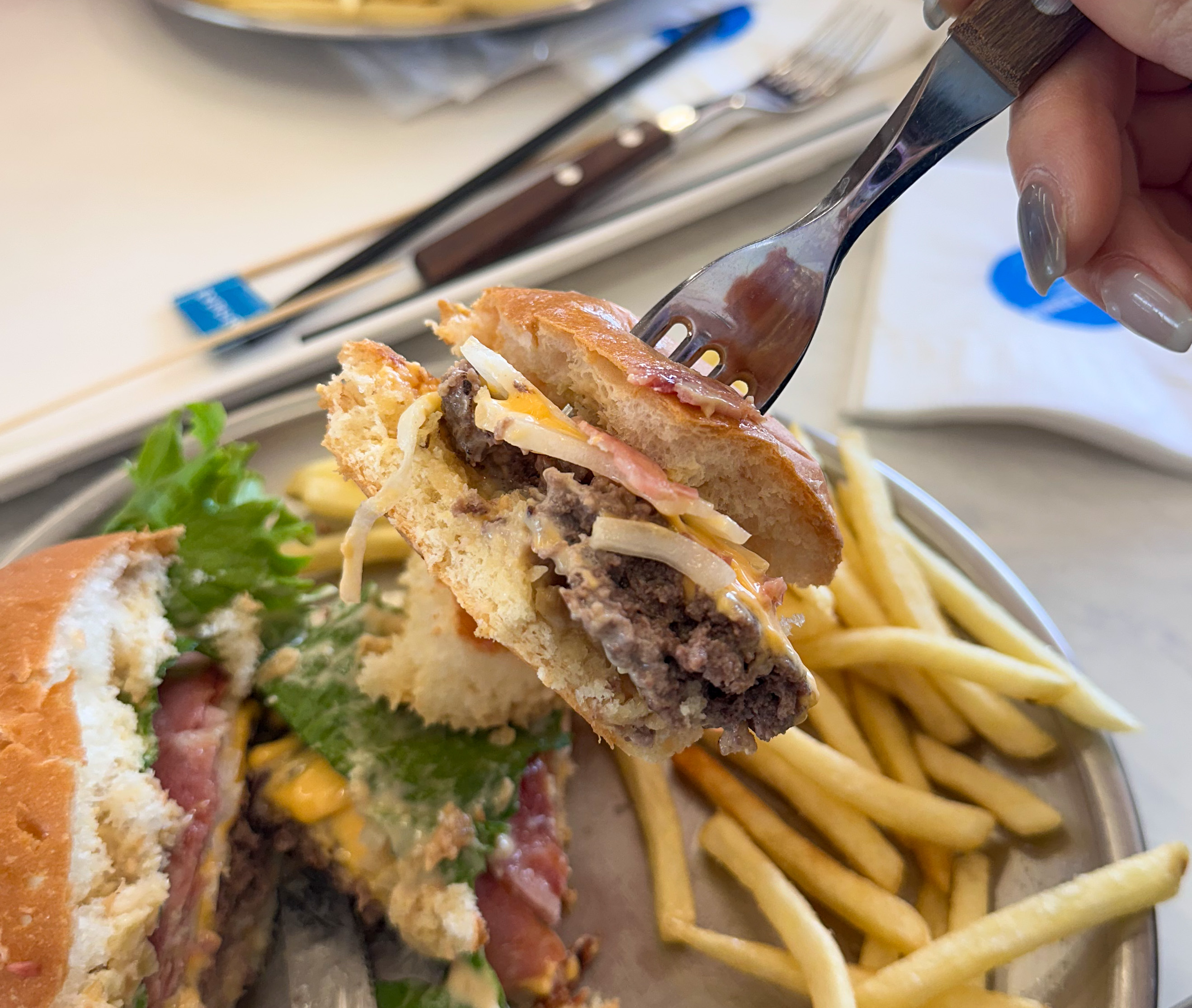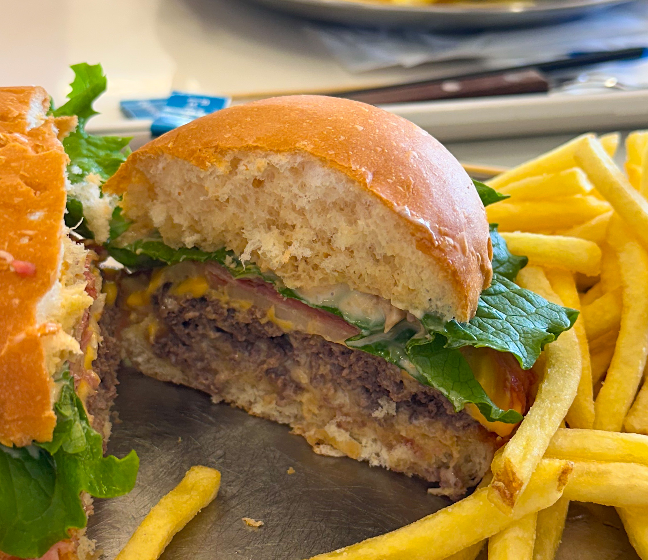 푸짐한 양의 베이컨더블치즈버거