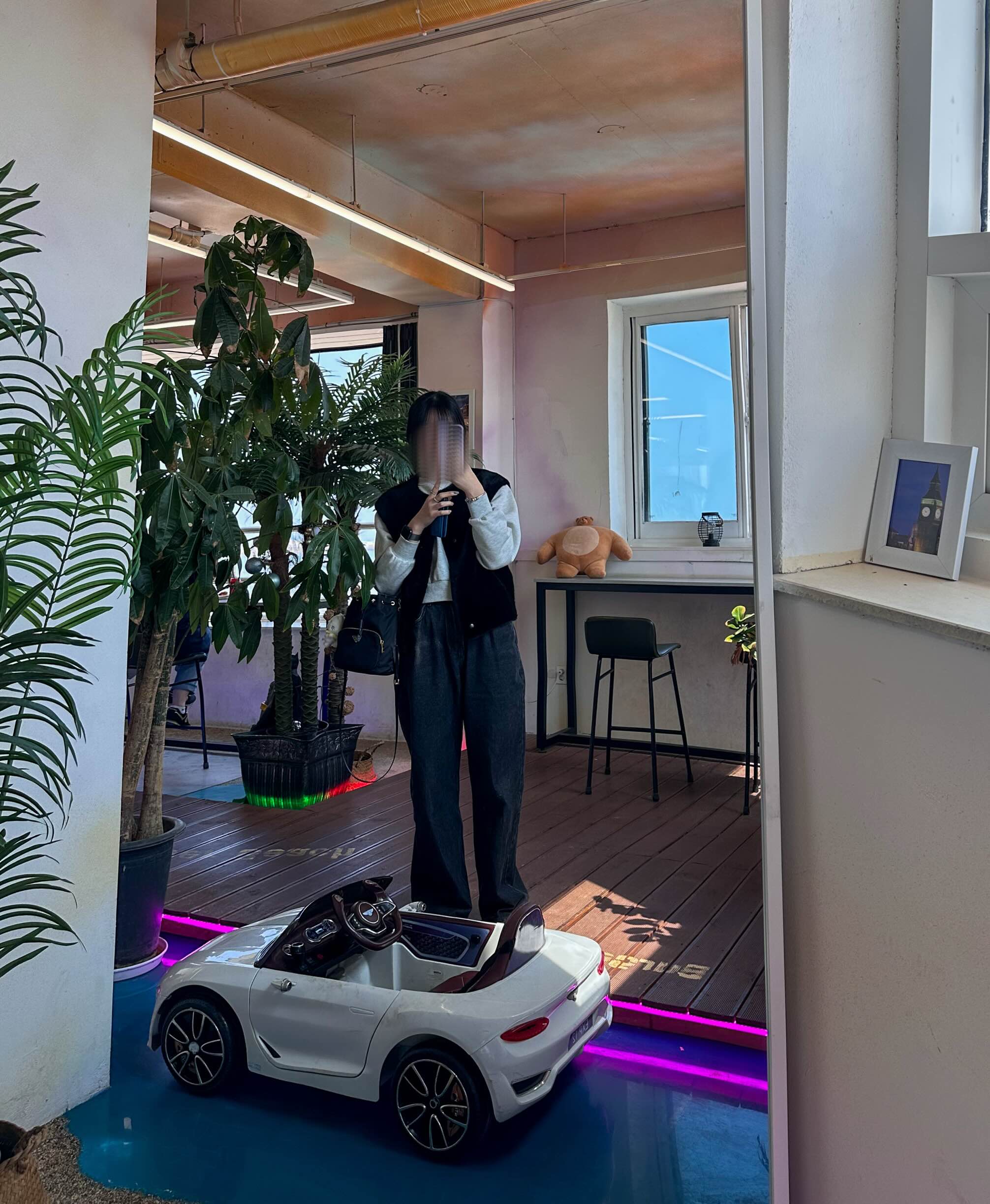 전신 거울이 있어 이 앞에서 사진 찍으면