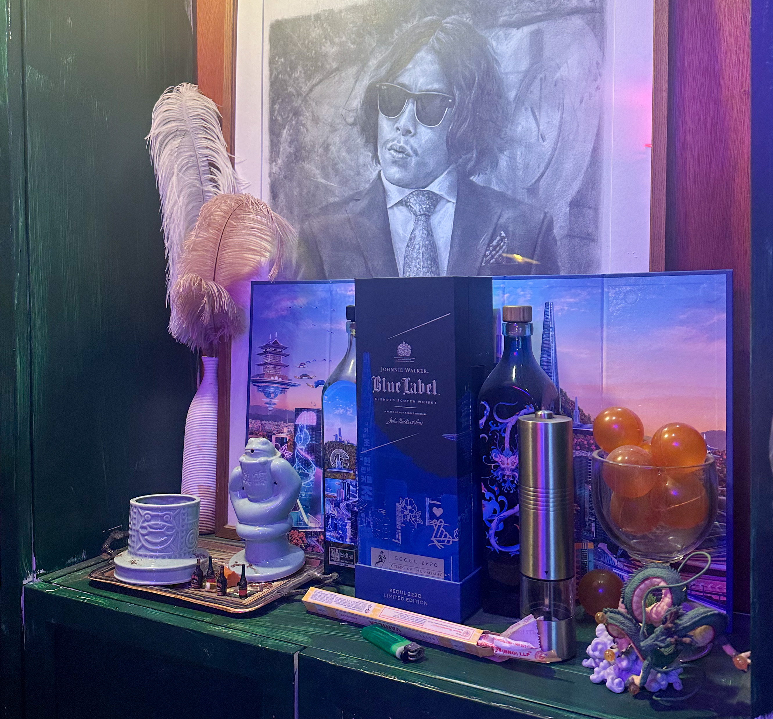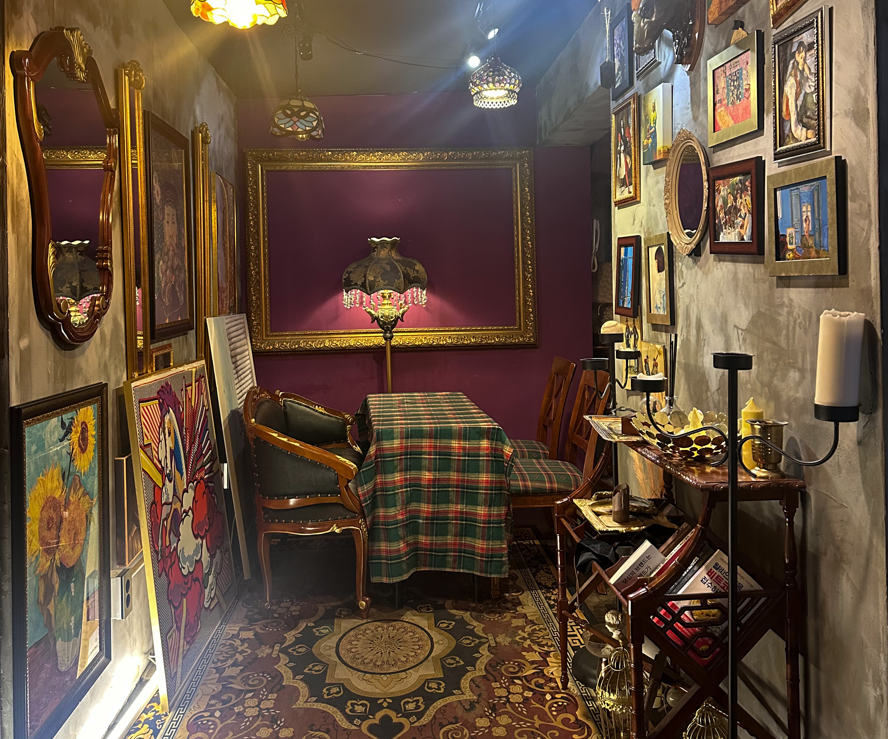 중간중간 액자며, 여러 가지 장식품이 놓여있는데