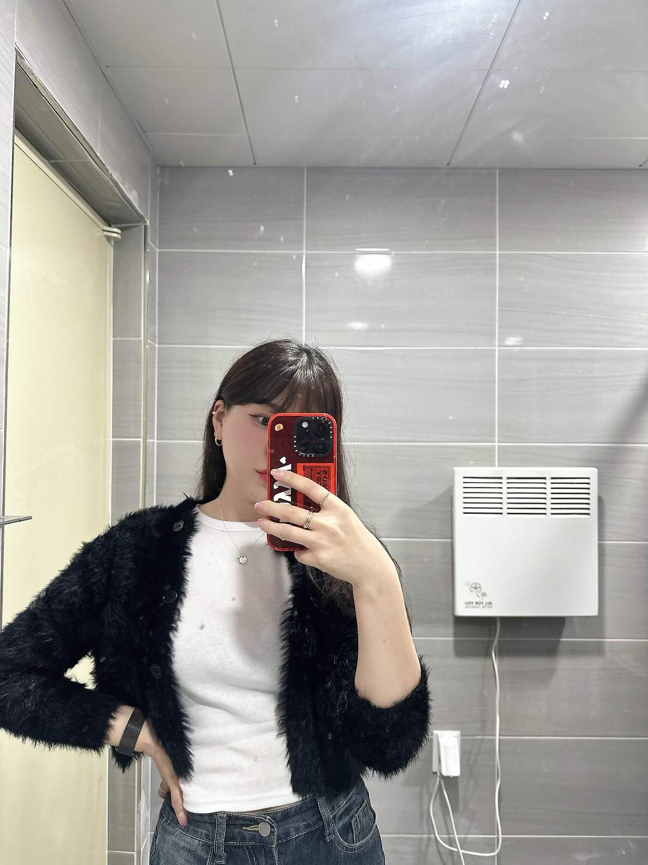 너무 추워서 따뜻한 가디건을 입고 출근했는데