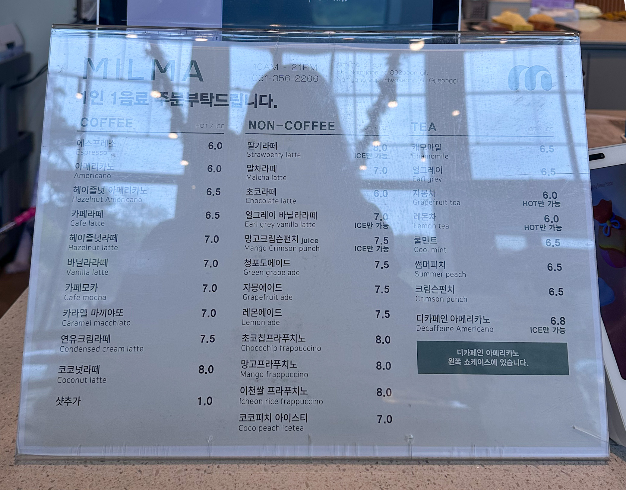 카페 밀마는 커피, 논커피, 수제 디저트,