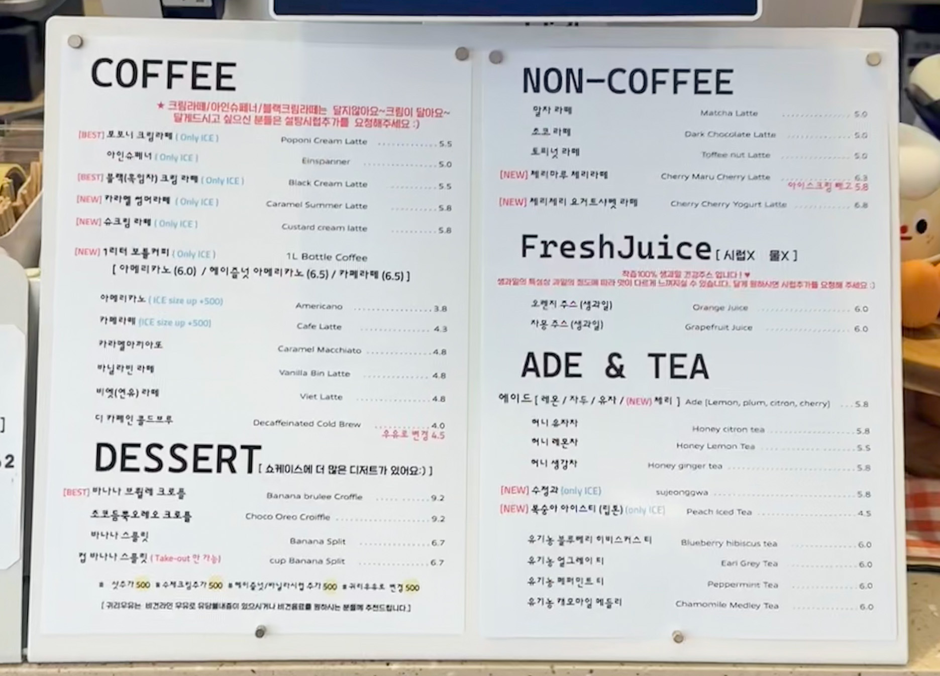 📝 포포니커피앤샵 메뉴 한눈에 보기