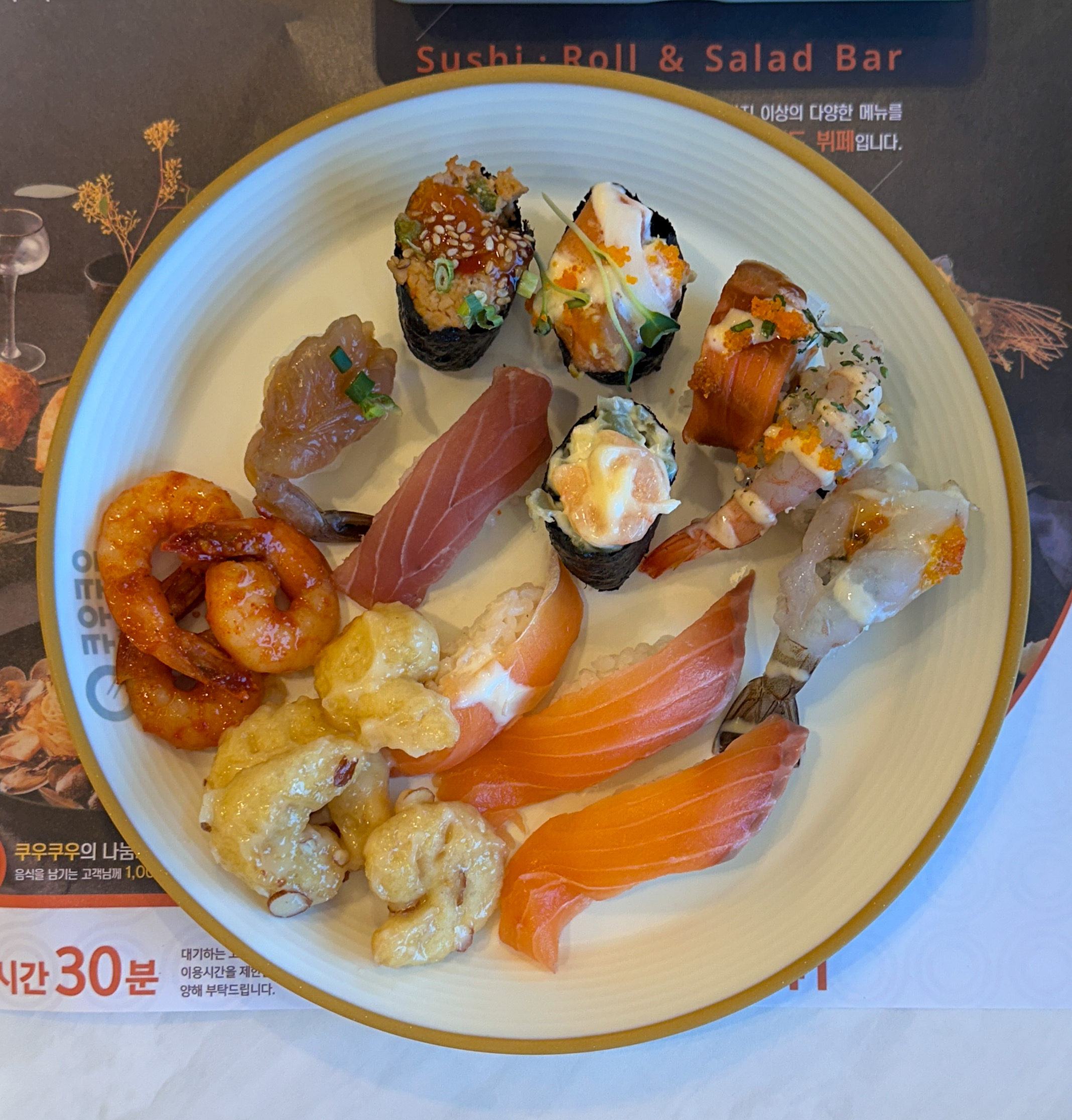다양한 종류의 초밥과 롤이 가득 채워져 있었고,